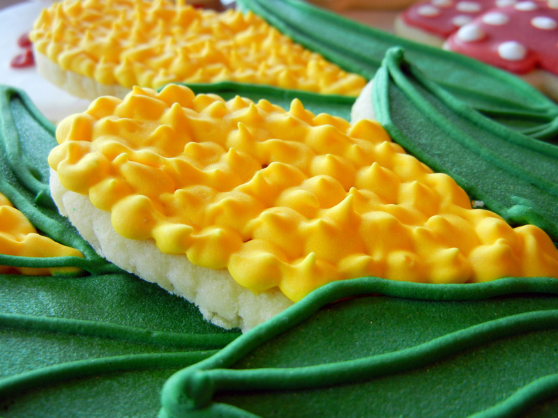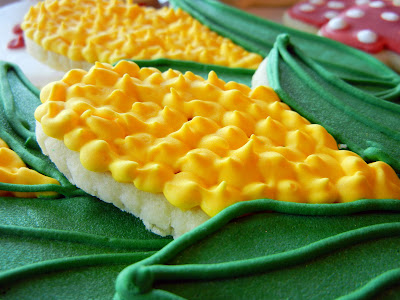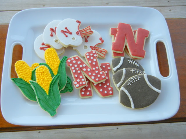 Husker football season is finally here! I searched far and wide for an "N" cookie cutter that resembled the Nebraska Huskers logo and I finally found one! It was so much fun listening to my husband's "Game Day" CD while I baked up these Cornhusker Cookies that I realized that for the first time ever I am genuinely excited for football season too! Yeah! We took them to our first tailgate of the year and they disappeared very quickly. My son says that the ears of corn are his very favorite! (Too bad he won't eat a real ear of corn :) Oh well.)