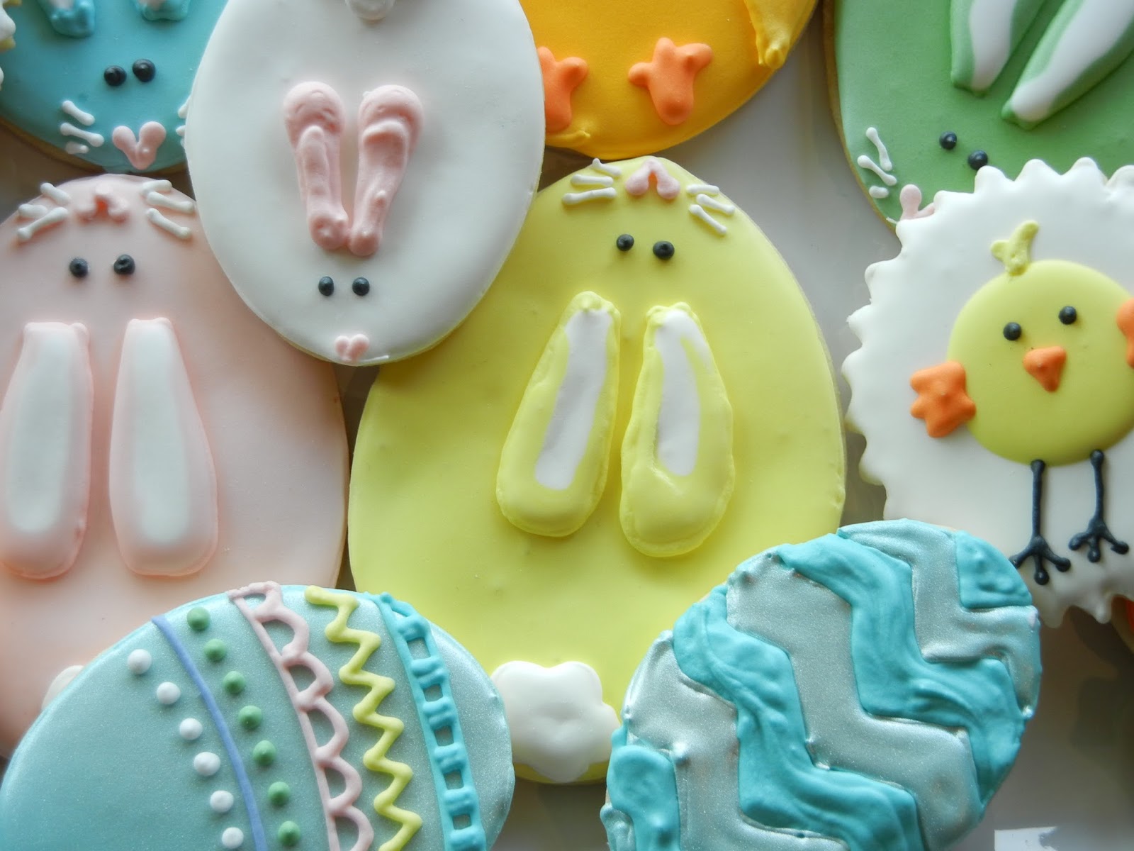 This year we hosted Easter at our home and there were several children in attendance, so I thought that it would be fun to have some fun cookies decorated just for them. We did, chicks, bunnies, eggs, carrots, chevron eggs etc. and almost all of them were done with a simple egg shaped cookie cutter. The bunnies were the heavy favorite! :)